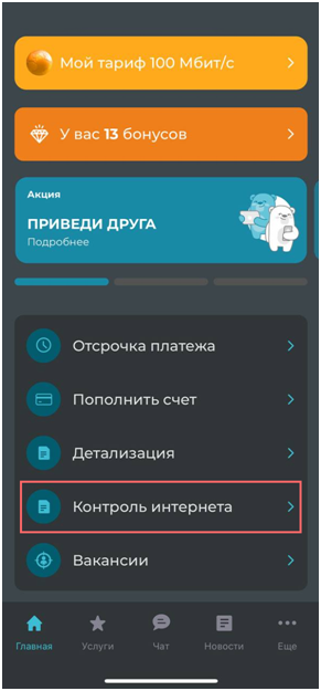 Контроль интернета - это специальная функция, с помощью которой наши абоненты могут удаленно регулировать доступ в интернет, а также вводить свои временные ограничения на любой удобный период времени.
